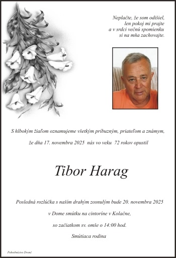 Posledná rozlúčka zo zosnulým bude 17.9.2024 o 15,00 hod.